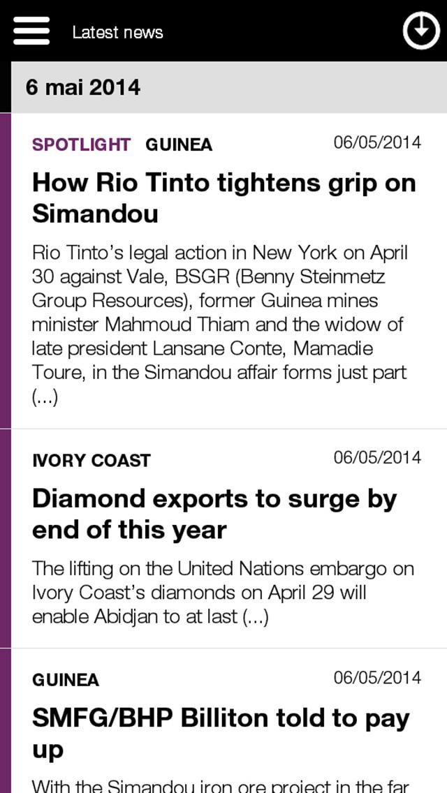 - Publicaciones especializadas en los sectores mineros y energéticos: inteligencia minera de África e inteligencia energética africana.